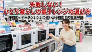 ひとり暮らしを始める方必見!電子レンジの選び方を徹底解説します。単機能レンジとオーブンレンジの違いから、最適な容量、フラット式とターンテーブル式の比較、ワット数などの機能面まで、ライフスタイルに合わせた失敗しない選び方のポイントを紹介。快適な新生活の準備にお役立てください。