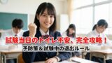 試験会場のトイレは混雑します。並ぶこと自体がストレスや焦りの原因になりかねません。しかし、座りっぱなしで血流が悪くなった身体を動かすチャンスでもあります。